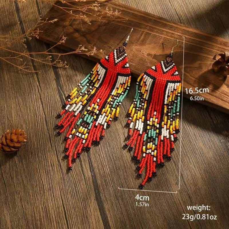 Long Bead Tassel Earrings Hand-woven Bohemian Earrings